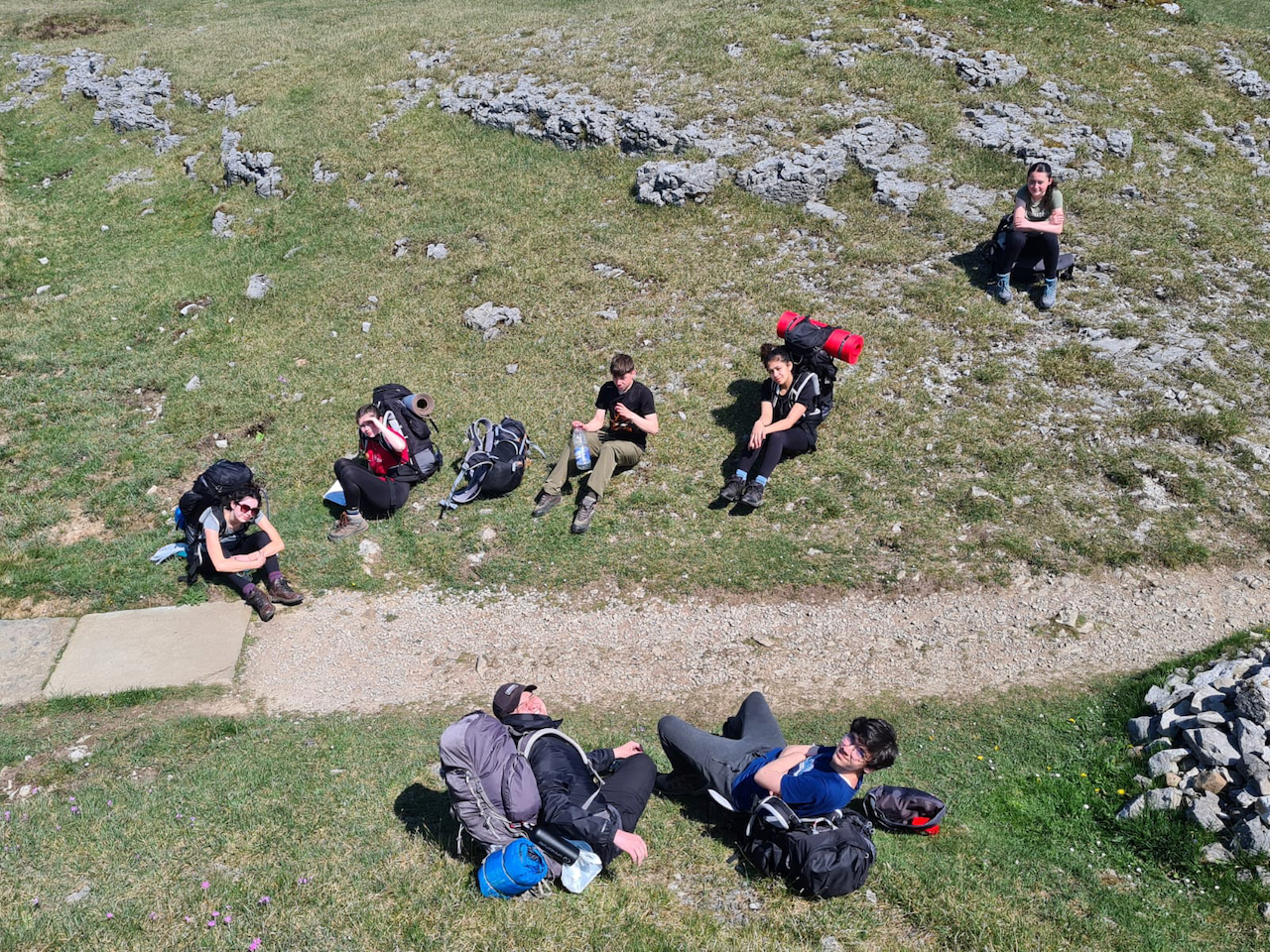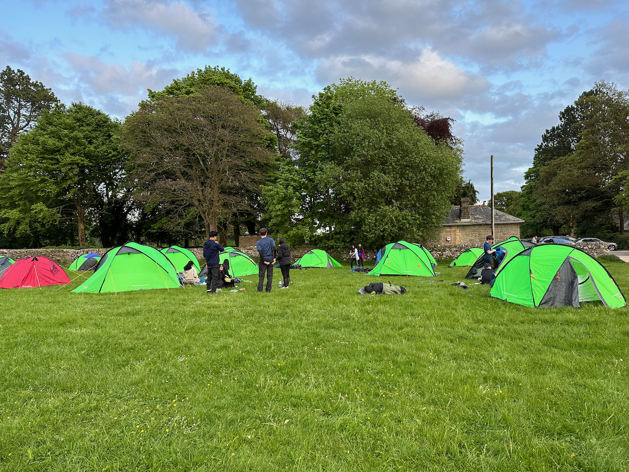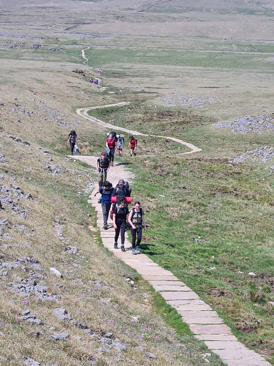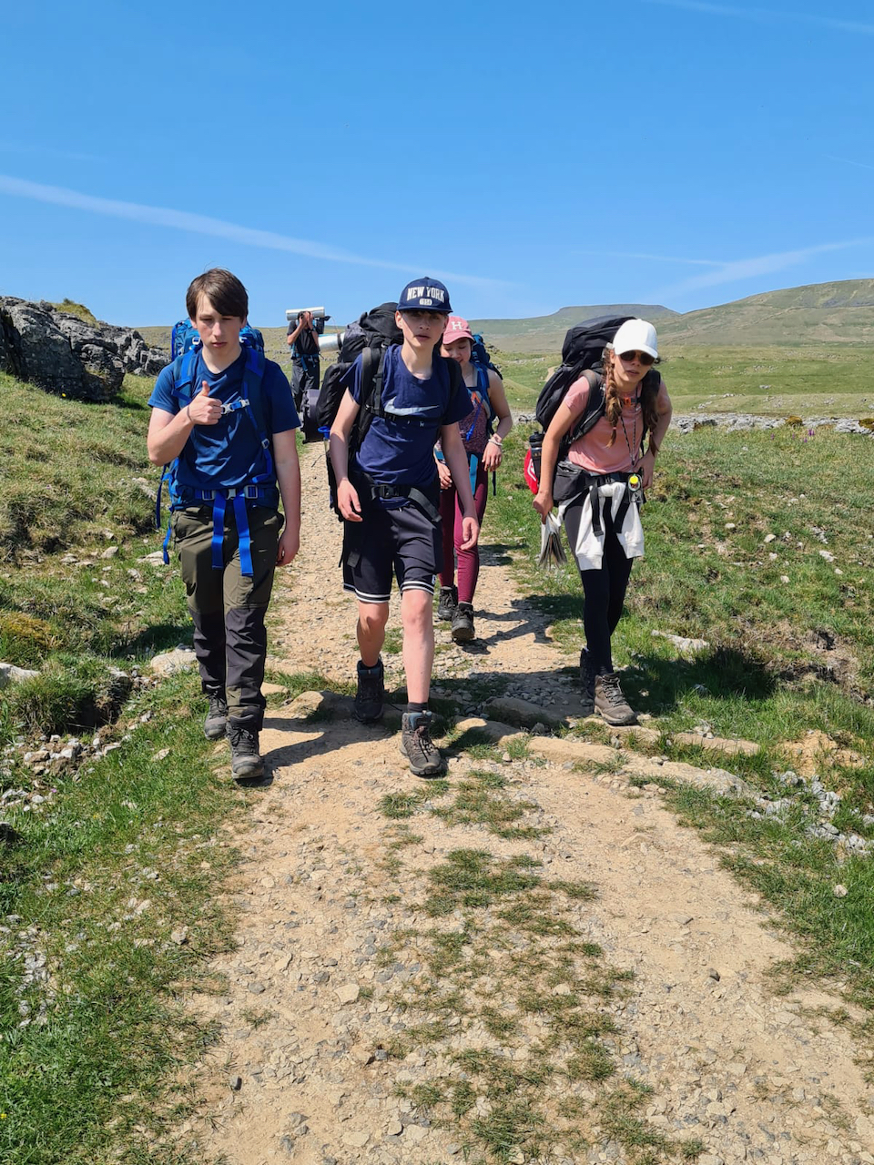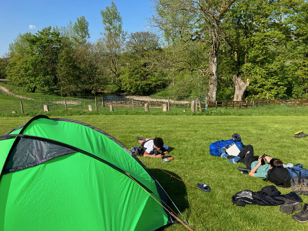 Day 2 was a little more challenging. There was a trail running marathon to contend with, as well as hot weather and a steep climb across to Horton in Ribblesdale. Spirits were good and everyone made better time than expected and there was plenty of time to enjoy the good weather at the second campsite. It is within a beautiful setting but unfortunately this time the Hogwarts express did not pass us on its way to the famous Ribblehead viaduct from the Harry Potter film (only rumoured to be filmed there unfortunately). Quite often a steam train can be seen passing close to the campsite.