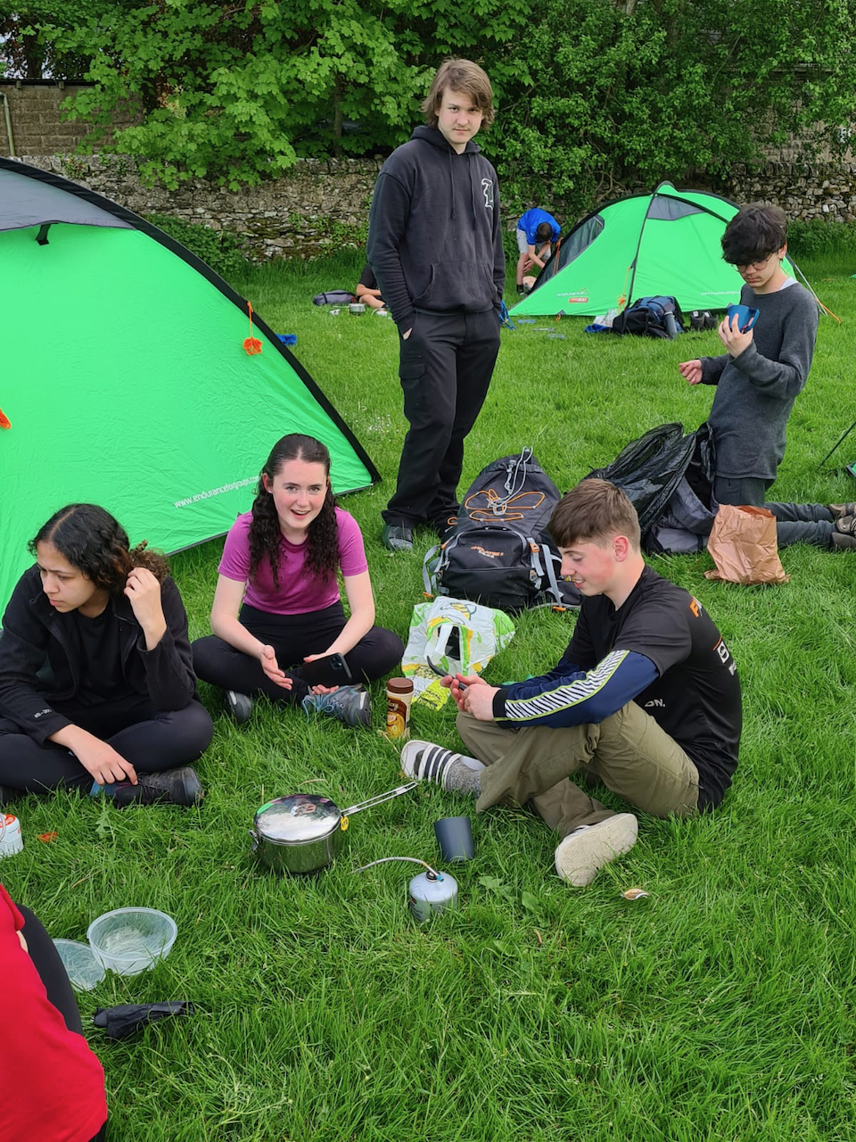 The campsite was a lovely campsite near Austwick and everyone cooked their hot meals and then relaxed in groups either playing football or sitting around enjoying the evening weather.